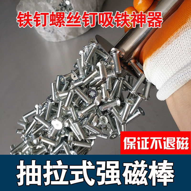 抽拉式磁棒,也叫吸鐵器,外面不銹鋼包裹,內(nèi)置強磁,可以將散落在地面上的鐵銷、鐵屑、鐵渣等吸附在一起,手拉上邊的圓環(huán)金屬鐵就會自動脫落,省時省力省人工,提高效率。