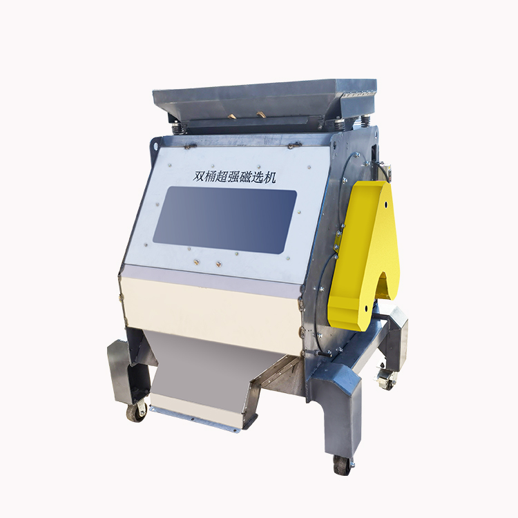該機器磁場強度大,采用雙滾筒制作,上滾筒筒皮外4000高斯,下滾筒筒皮外8000高斯,可連續(xù)不斷的將磁性物與非磁性物進行分離處理,除鐵效率高,節(jié)省人工,是石材廠、玻璃廠、調料廠等廠家鐵粉除雜的理想產(chǎn)品。